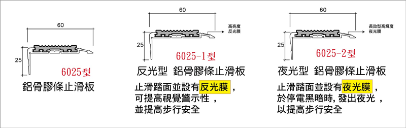 2. ST-6025 鋁合金樓梯止滑條+膠條
